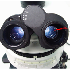 如上圖,我們逆著光的方向,可以清楚的看到物鏡表面的臟物并清除。如右圖,改變觀察角度可以清晰判斷目鏡表面臟物并清除。