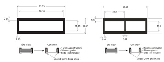 2 well ProPlateslide module / 16.5mm X 34mm, DELRIN SNAP CLIPS