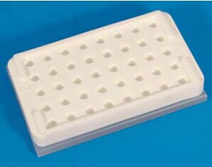 EMS染色盤,硅膠制造,用于電子顯微鏡樣品包埋后的染色和免疫組織化學(xué)操作時,其優(yōu)勢遠(yuǎn)勝于現(xiàn)行其他染色裝置?;瘜W(xué)蝕刻過程、抗體孵育和染色都能在EMS染色盤小圓錐孔內(nèi)操作。外尺寸長127.5mm、寬85.5mm、厚11.5mm, 8行12列共96個錐形孔(形狀類似微量滴定板),每個圓錐孔都是直徑7mm的倒錐形,深2mm,銅網(wǎng)漂浮或固定在其底端。圓錐孔能容納12-60µl溶液??捎?span lang="EN-US">Falcon 3072 Microtest™ III 96孔盤做蓋子。