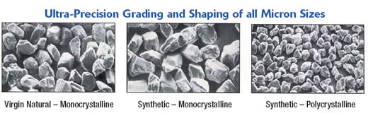 Glennel®金剛石研磨膏可以分為天然單晶型、人造單晶型、人造多晶型三種(大小從1/10μm60μm)。這三種晶體的外形圖片見(jiàn)下: