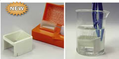 包括Wash-N-Dry蓋玻片架和Wash-N-Dry載玻片架,均可以高壓滅菌,可以透明、處理、染色、干燥一口氣完成。國際實驗室最新流行款式,一般用燒杯來盛放染液或者洗液,再將架子浸入其中。蓋玻片架至多可以放置10片蓋片,最奇妙的是蓋片的大小不受制約,18mm22mm,25mm,均可以從容放置。載玻片架可以放置12個標準載玻片。