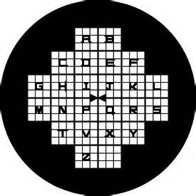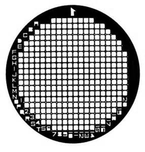 l  200F2型坐標載網(wǎng):粗的柵條分割出小的區(qū)域,每小區(qū)域內是細柵條組成的9個孔,每一區(qū)域對應一個字母編碼。