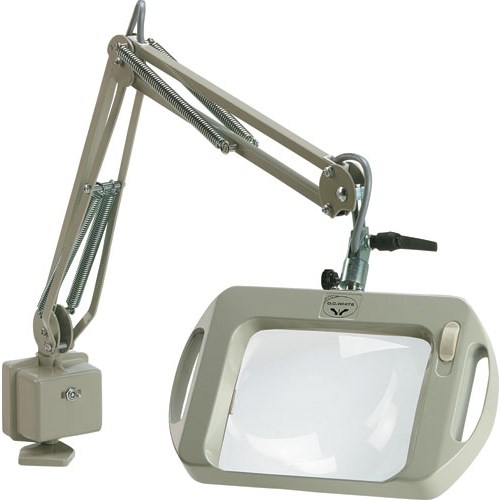 Vision-Lite®2000是世界上第一款可以調(diào)光的熒光燈放大鏡,專利的鎮(zhèn)流器芯片調(diào)節(jié)全光譜燈管使得光線可從100%降至25%。燈管獨特的U型設計,近似無影燈光,最大功率34W,壽命:10000小時。該燈很好消除了熒光閃爍,降低對眼鏡的傷害。光潔的3倍屈光率透鏡(1.75-1.85×),大小7.5″×6.2″。折疊伸縮臂長可達43英寸(夾持型)。