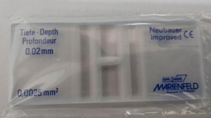 德國原裝進口Marienfeld細(xì)菌計數(shù)板,改進牛鮑型(Neubauer-improved),Petroff Hausser Counting Chamber,由特殊光學(xué)玻璃制成。每板有2個計數(shù)池,計數(shù)池深度為0.02mm,深度值誤差范圍1微米。因為受到深度限制,一般提供的產(chǎn)品是暗線型(線條蝕刻出來的)。用于細(xì)菌或者用于未稀釋標(biāo)本的精子計數(shù),帶有CE標(biāo)識,滿足98/79EC條款,可以用于IVD。每套里面1個板,2個蓋片。