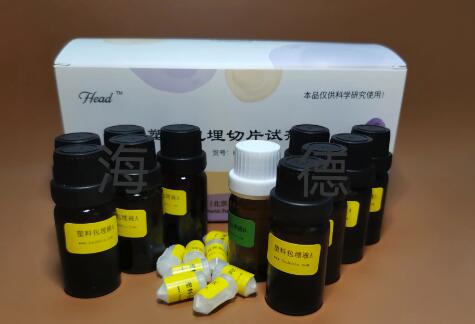 這是一款丙烯酸類塑料包埋切片試劑盒,媲美于傳統(tǒng)的塑料包埋切片865試劑盒。本試劑盒含有動物組織樣品塑料包埋所需的整套試劑,使用本試劑盒可以方便快速地完成組織固定,組織包埋,組織染色等操作。本試劑盒適合包埋各種動物組織:腦、肺、皮膚、肌肉、胃、腸、胰、肝、心、脾、骨髓、骨骼、神經、膽等組織標本。由于本試劑盒采用低溫、常溫反應,故采用本試劑盒包埋的樣本,其組織中細胞完整,不會被破壞,因此可廣泛用于病理檢驗、動物檢驗時的標本制備。使用本試劑盒制成的切片,無需脫鈣,可直接染色,適合于常規(guī)染色、組織化學染色及部分免疫組織化學染色。